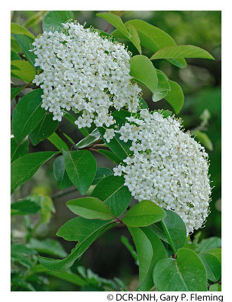 Characteristic trees in the Piedmont and mountain valleys include sycamore (Platanus occidentalis), eastern boxelder (Acer negundo var. negundo), American elm (Ulmus americana), green ash (Fraxinus pennsylvanica), river birch (Betula nigra), red maple (Acer rubrum), yellow buckeye (Aesculus flava; southwestern Virginia only), black walnut (Juglans nigra), tulip-tree (Liriodendron tulipifera), and black willow (Salix nigra). Shrubs include spicebush (Lindera benzoin var. benzoin), black haw (Viburnum prunifolium), American hornbeam (Carpinus caroliniana), and American hazelnut (Corylus americana). Herbaceous composition varies greatly with site conditions and geography, but generally includes such characteristic species as mistflower (Conoclinium coelestinum), hollow joe-pye weed (Eutrochium fistulosum), thin-leaved sunflower (Helianthus decapetalus), cardinal flower (Lobelia cardinalis), great blue lobelia (Lobelia siphilitica), American bugleweed (Lycopus americanus), Virginia bugleweed (Lycopus virginicus), fringed loosestrife (Steironema ciliatum), sensitive fern (Onoclea sensibilis var. sensibilis), fall phlox (Phlox paniculata), hispid hedge-nettle (Stachys hispida), tall meadow-rue (Thalictrum pubescens), and wingstem (Verbesina alternifolia) .
