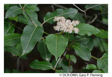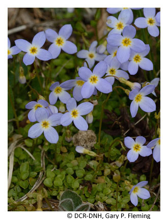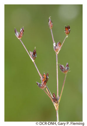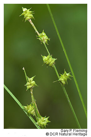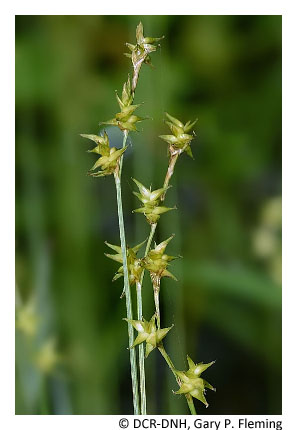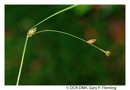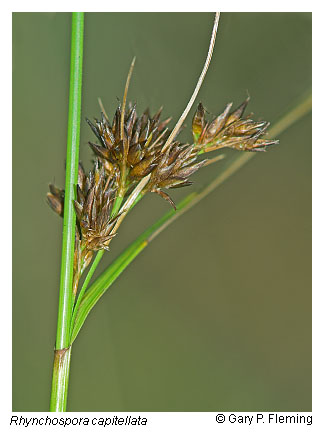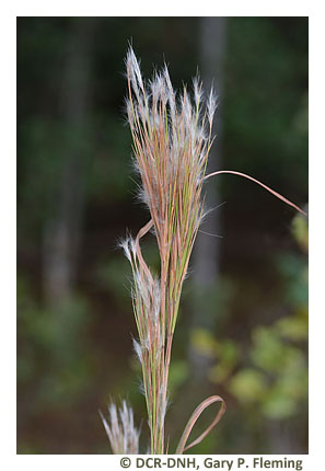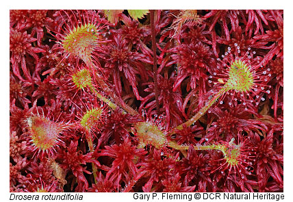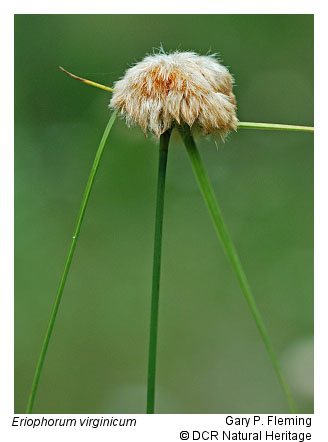 Bog vegetation is frequently a mosaic of tree or shrub patches and herbaceous openings. Several compositional variants associated with geography and elevation have been documented in Virginia. Species common to most variants include great rhododendron (Rhododendron maximum), Catawba rhododendron (Rhododendron catawbiense), silky willow (Salix sericea), smooth alder (Alnus serrulata), cinnamon fern (Osmundastrum cinnamomeum), tawny cottongrass (Eriophorum virginicum), prickly bog sedge (Carex atlantica), Fraser's marsh St. Johns-wort (Triadenum fraseri) , and brownish beaksedge (Rhynchospora capitellata). Species more restricted to low-elevation (below 900 m [3000 ft]) bogs of the Ridge and Valley and Cumberland Mountains include pitch pine (Pinus rigida), round-leaved sundew (Drosera rotundifolia ), bushy bluestem (Andropogon glomeratus), tussock sedge (Carex stricta), tuberous grass-pink (Calopogon tuberosus var. tuberosus), yellow fringed orchid (Platanthera ciliaris), and Nuttall's reed-grass (Calamagrostis coarctata). Species more restricted to higher-elevation (mostly above 900 m [3000 ft]) bogs of the southern Blue Ridge, Allegheny Mountains, and/or the highest mountains of the Ridge and Valley include stunted red spruce (Picea rubens), long-stalked holly (Ilex collina), northern wild raisin (Viburnum cassinoides), Carolina laurel (Kalmia carolina), cranberry (Vaccinium macrocarpon), rough-leaved goldenrod (Solidago patula), Cuthbert's turtlehead (Chelone cuthbertii), bog goldenrod (Solidago uliginosa var. uliginosa), star sedge (Carex echinata ssp. echinata), narrow-leaf bur-reed (Sparganium acaule), bog willow-herb (Epilobium leptophyllum), narrow-panicled rush (Juncus brevicaudatus), three-seeded sedge (Carex trisperma), Ruth's sedge (Carex ruthii), and thyme-leaf bluets (Houstonia serpyllifolia).