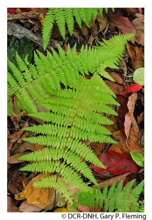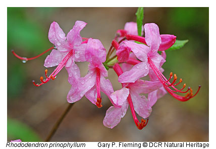 Dominance by northern red oak (Quercus rubra) characterizes these forests, which reach maximal importance at elevations above 900 m (3,000 ft) throughout western Virginia. Similar forests are found throughout higher elevations of the Southern and Central Appalachians. Although composition varies with parent material and landscape position, prolonged weathering and limited accumulation of soil organic matter have generally resulted in moderately to strongly infertile soils and consequently moderate to low species richness. In addition to the prevalent red oaks, scattered associates of white oak (Quercus alba), birches (Betula alleghaniensis and Betula lenta), and black cherry (Prunus serotina var. serotina) are often present in the overstory. Typical small trees and shrubs include mountain holly (Ilex montana), witch-hazel (Hamamelis virginiana), striped maple (Acer pensylvanicum), minnie-bush (Menziesia pilosa), early azalea (Rhododendron prinophyllum), beaked hazelnut (Corylus cornuta var. cornuta), and sprouts of American chestnut (Castanea dentata). In southwestern Virginia stands with Southern Appalachian affinities, flame azalea (Rhododendron calendulaceum), southern mountain cranberry (Vaccinium erythrocarpum), and mountain highbush blueberry (Vaccinium simulatum) are characteristic shrubs. Stands typically contain ground layers of hayscented fern (Dennstaedtia punctilobula), New York fern (Parathelypteris noveboracensis), low ericaceous shrubs (e.g., lowbush blueberry, [Vaccinium pallidum]), or patches of graminoids such as Pennsylvania sedge (Carex pensylvanica) and wavy hairgrass (Avenella flexuosa). Other characteristic herbs include fly-poison (Amianthium muscitoxicum), poke milkweed (Asclepias exaltata), panicled hawkweed (Hieracium paniculatum), whorled loosestrife (Lysimachia quadrifolia), eastern lousewort (Pedicularis canadensis), rattlesnake-roots (Prenanthes spp.), whorled aster (Oclemena acuminata), cut-leaved goldenrod (Solidago arguta var. arguta), and Curtis' goldenrod (Solidago curtisii).