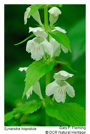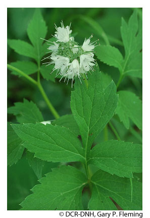 The mixed hardwood forests of this group occupy fertile, mesic, mountain-slope habitats at elevations ranging from about 300 m (1,000 ft) commonly to 1,100 m (3,600 ft), and occasionally higher. Distributed locally throughout western Virginia, these forests are strongly associated with moist, sheltered, landforms (i.e., coves, ravines, and concave lower slopes). Soils may be weathered from various substrates but are generally moderately acidic to moderately alkaline, with high base saturation. In these habitats, soil fertility appears to be strongly correlated with high base cation levels (particularly calcium, magnesium, and manganese) rather than with high pH, and higher-elevation sites often have soils with surprisingly low pH. Characteristic trees include sugar maple (Acer saccharum), basswoods (Tilia americana var. americana and var. heterophylla), white ash (Fraxinus americana), tulip-tree (Liriodendron tulipifera), bitternut hickory (Carya cordiformis) and yellow buckeye (Aesculus flava); chiefly south of the James River). Herbaceous growth is lush with spring ephemerals and leafy, shade-tolerant forbs such as blue cohosh (Caulophyllum thalictroides), yellow jewelweed (Impatiens pallida), large-flowered trillium (Trillium grandiflorum), wood-nettle (Laportea canadensis), common black cohosh (Actaea racemosa), sweet cicely (Osmorhiza claytonii), Virginia waterleaf (Hydrophyllum virginianum), large-leaf waterleaf (Hydrophyllum macrophyllum), large-flowered bellwort (Uvularia grandiflora), red trillium (Trillium erectum), yellow violets (Viola pubescens and Viola eriocarpa), white baneberry (Actaea pachypoda), two-leaved miterwort (Mitella diphylla), goat's-beard (Aruncus dioicus var. dioicus,), yellow mandarin (Prosartes lanuginosa), showy skullcap (Scutellaria serrata), eastern blue-eyed-mary (Collinsia verna), Guyandotte beauty (Synandra hispidula), glade fern (Homalosorus pycnocarpos), and many others. Compositional variation related to substrate and elevation is complex but the group partitions convincingly into several major community types. The principal threats to rich cove forests are logging and invasion by shade-tolerant, non-native weeds, especially garlic-mustard (Alliaria petiolata). The frequent to common white ash component of these communities is undergoing widespread mortality from Emerald Ash Borer outbreaks.