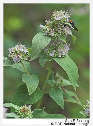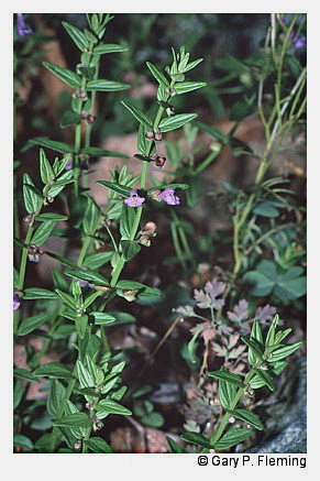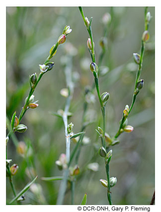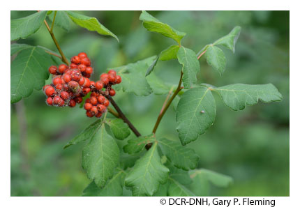 Habitats of the mafic barrens generally have high cover of exposed bedrock, but often have more extensive organic or soil mats, and thus more vascular plant cover, than do acidic outcrops. Soils usually consist of thin veneers and vary from moderately acidic to circumneutral, with moderately high base status. Vegetation is usually a patchwork of severely stunted trees, shrub thickets, herbaceous mats, and lithophytic lichens. Typical woody species include white ash (Fraxinus americana), eastern red cedar (Juniperus virginiana), fringetree (Chionanthus virginicus), common ninebark (Physocarpus opulifolius var. opulifolius), staghorn sumac (Rhus typhina), aromatic sumac (Rhus aromatica var. aromatica), and hoptree (Ptelea trifoliata var. trifoliata). Eastern prickly-pear (Opuntia humifusa) is present at most Piedmont sites. Typical herbs include nodding onion (Allium cernuum), roundleaf fameflower (Phemeranthus teretifolius), slender knotweed (Polygonum tenue), woodland sunflower (Helianthus divaricatus), hairy lip fern (Myriopteris lanosa), rusty woodsia (Woodsia ilvensis), little bluestem(Schizachyrium scoparium var. scoparium), Pennsylvania sedge (Carex pensylvanica), hair-awn muhly (Muhlenbergia capillaris), whorled milkweed (Asclepias verticillata), Appalachian phacelia (Phacelia dubia var. dubia), hoary mountain-mint (Pycnanthemum incanum var. incanum), dwarf skullcap (Scutellaria leonardii), blue waxweed (Cuphea viscosissima), upland flatsedge (Cyperus lupulinus ssp. lupulinus), lacegrass (Eragrostis capillaris), false pennyroyal (Trichostema brachiatum), Virginia dwarf-dandelion (Krigia virginica), pale corydalis (Capnoides sempervirens), mountains and foothills only), and American alumroot (Heuchera americana).