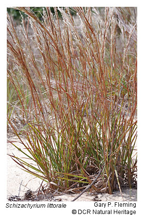 These deciduous, coniferous, and broadleaf evergreen woodlands occur on back dunes protected from regular salt spray. Similar communities occur along the Atlantic and Gulf coasts from New Jersey to Texas. Compared to maritime upland forests, these woodlands have a much more open canopy and are more localized and restricted to xeric dune systems. Habitats are commonly on convex, rapidly drained dunes and less frequently on xeric sand flats. Floristic composition of communities in this group varies considerably with geography. Along the southeastern Virginia coast (City of Virginia Beach), live oak (Quercus virginiana), bluejack oak (Quercus incana), and sassafras (Sassafras albidum) dominate stands, with loblolly pine (Pinus taeda), black cherry (Prunus serotina var. serotina) and hercules'-club (Zanthoxylum clava-herculis) as less abundant associates. In the same area, and northward on the Eastern Shore (Accomack and Northampton Counties), a community type of widely spaced loblolly pine with scattered, scrubby oaks (e.g ., (Quercus nigra and Quercus falcata), dwarf-shrub patches of sand heather (Hudsonia tomentosa), and large areas of exposed sand occurs on the highest back-dune systems (the so-called "Great Dunes"). Another xeric back-dune community dominated by black cherry, prickly-pear (Opuntia humifusa), and seaside little bluestem (Schizachyrium littorale) has been documented at two Eastern Shore locations. Eastern redcedar (Juniperus virginiana) dominates a few dune woodlands on the maritime barrier islands of the Eastern Shore. Scattered herbaceous plants that occur in these woodlands include sea-beach needlegrass (Aristida tuberculosa), cottony golden-aster (Chrysopsis gossypina), yellow thistle (Cirsium horridulum var. horridulum), oval flowered panic grass (Dichanthelium ovale var. ovale), coastal bedstraw (Galium bermudense), Canada frostweed (Crocanthemum canadense), woolly ragwort (Packera tomentosa), dune ground-cherry (Physalis walteri), coastal jointweed (Polygonella articulata), and grass-leaved golden-aster (Pityopsis nervosa). All communities in this group are considered globally and state rare.