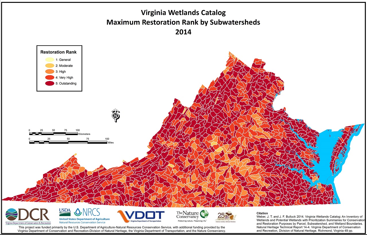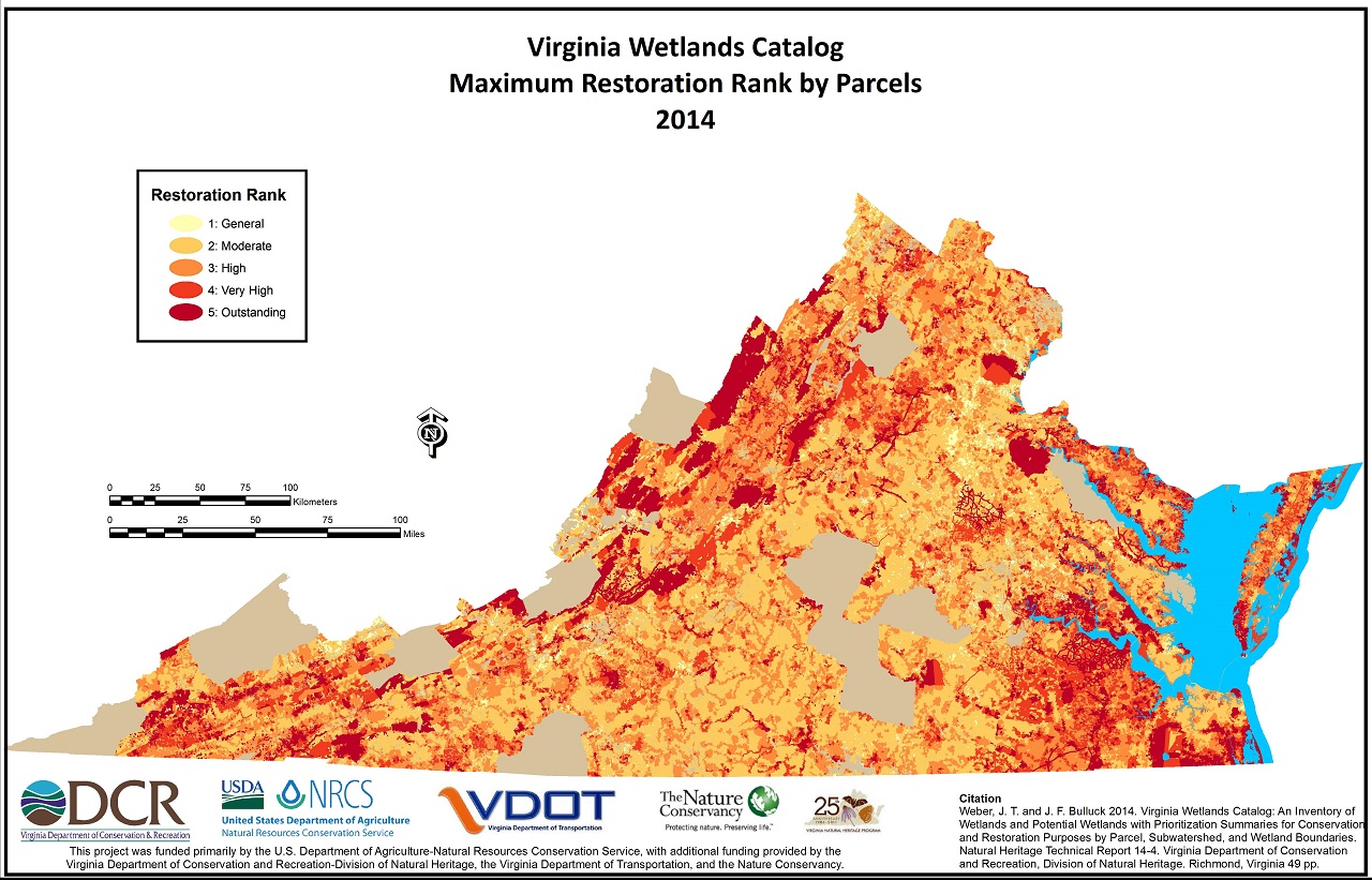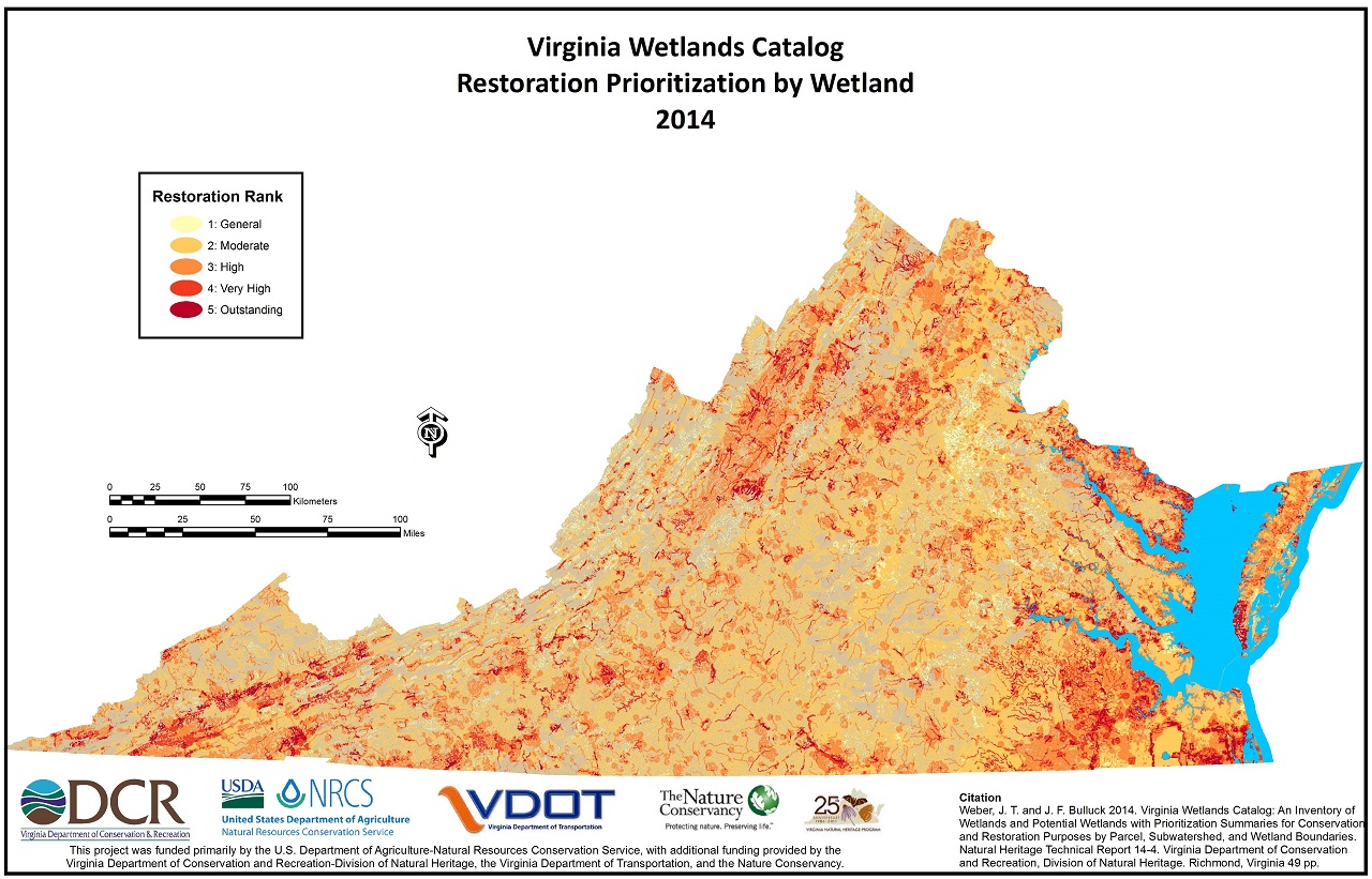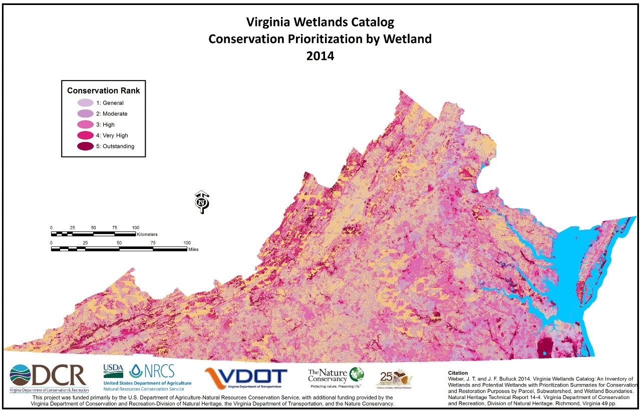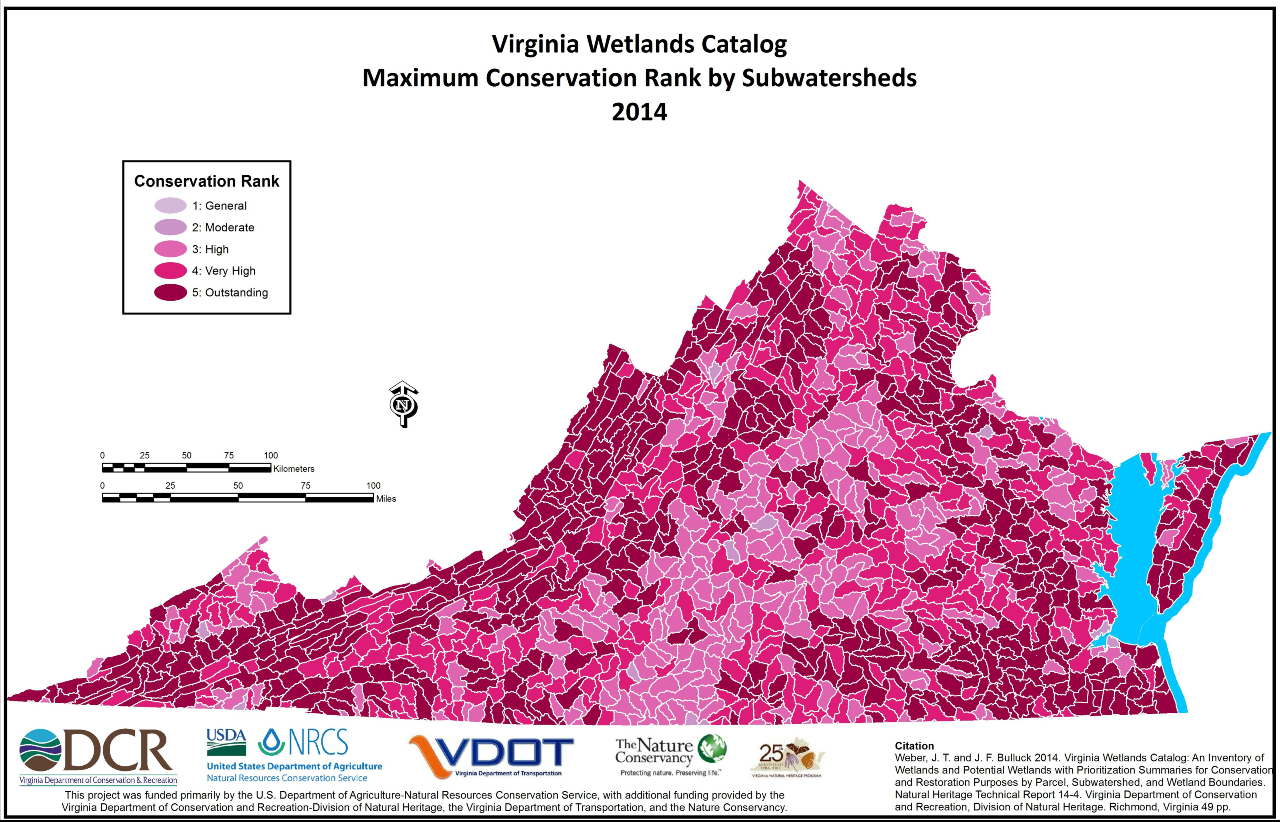 保育與休閒部 弗吉尼亞濕地目錄(VWC)是濕地和潛在濕地的清單,其中包括按土地,水域和濕地邊界的優先順序摘要,用於保育和恢復目的。