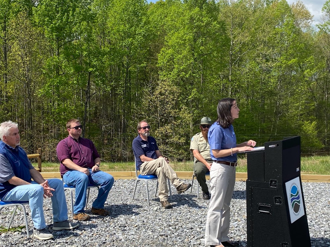 剪帶的是在弗吉尼亞州斯賓塞的普拉特路上的小徑的新停車場進行了。講者包括亨利縣政府、弗吉尼亞州保育和康樂部、丹河流域協會(DRBA)和地區生態大使委員會(EAC)的代表。