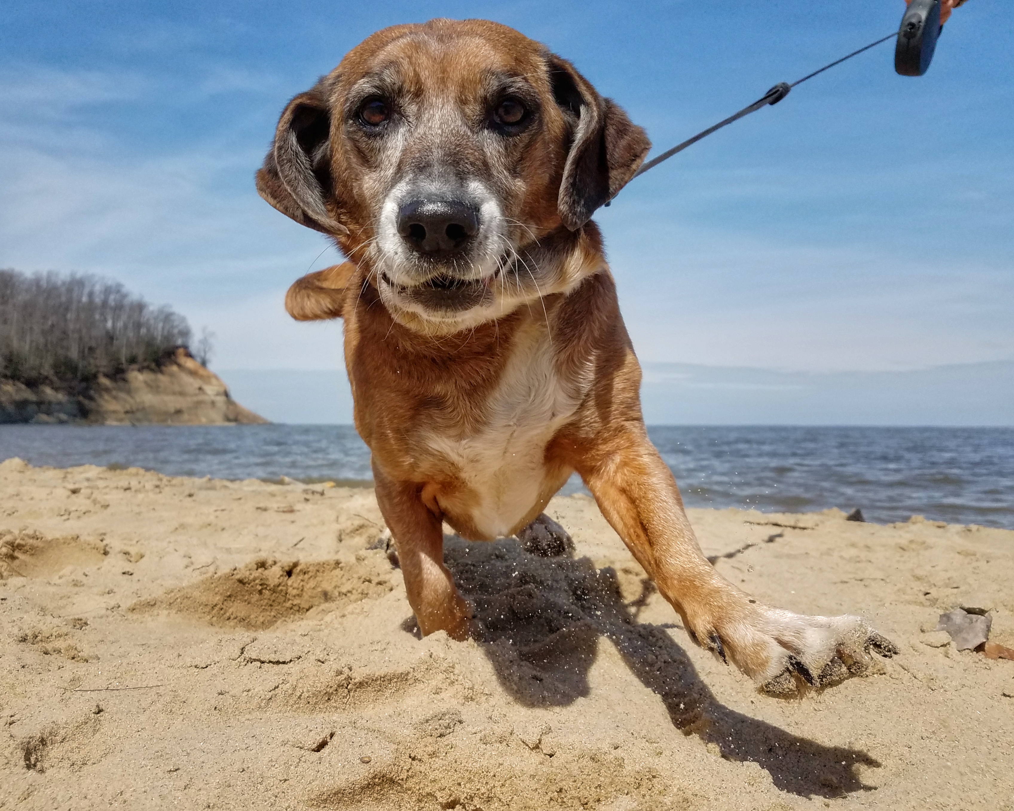 (編輯:點擊此鏈接下載圖像。圖片說明:威斯特摩蘭州立公園海灘上的狗)